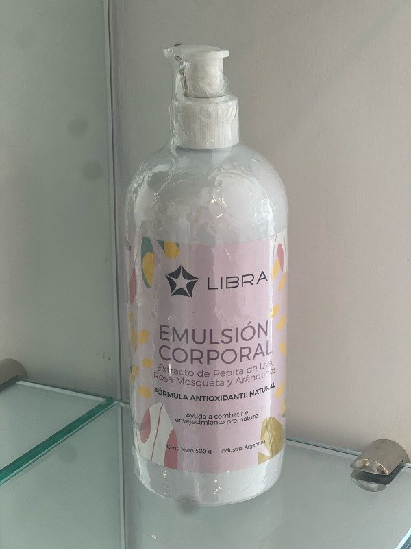 Emulsión corporal con extracto de pepita de uva, rosa mosqueta y arándanos.